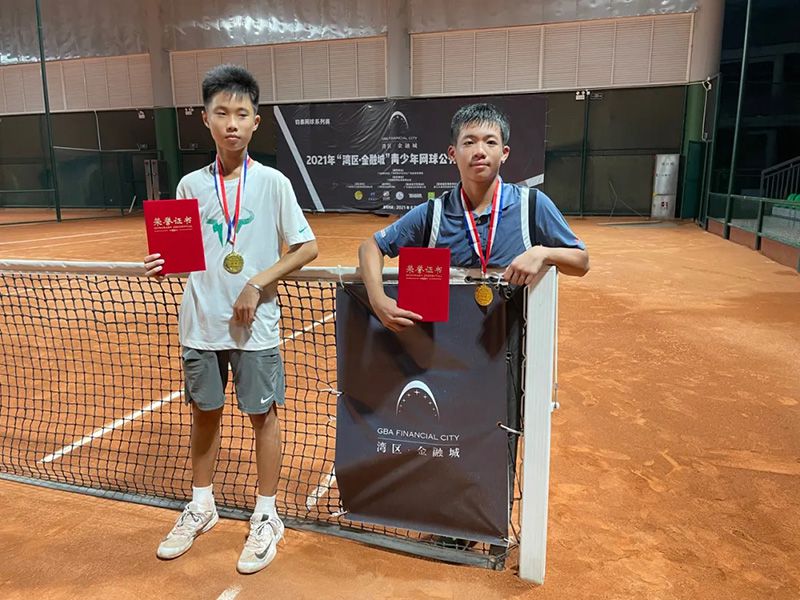 北京时间10月2日晚,2021年“湾区·金融城”青少年网球公开赛(C400)红土站U14组在国际网球中心落下帷幕。最终,吴天皓、张沁岩分别赢得男单和女单的冠军,陈宁帆/高若宸和谢睿琪/张沁岩泽分别赢得了男双和女双的冠军。值得一提的是,张沁岩一人赢得了双冠,成为了本站赛事的最大赢家。女单冠军张沁岩(右)男单冠军:吴天皓(左)男双冠军:陈宁帆/高若宸女双冠军:谢睿琪/张沁岩